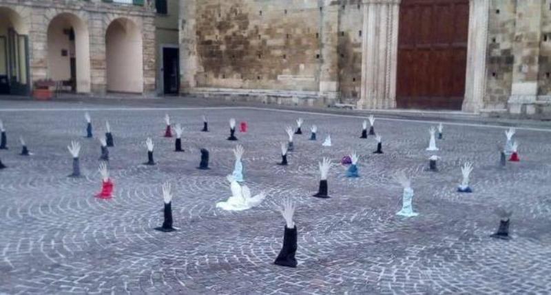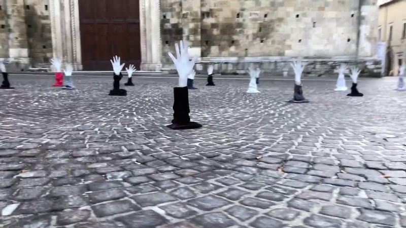 Un’installazione artistica. Nessun grido, nessuna rimostranza aggressiva. Arte contro Salvini, e contro le sue politiche sull’immigrazione. Decine di mani di cartone che spuntavano dal selciato come se stessero cercando aiuto prima di scomparire per sempre sotto terra. È la singolare installazione di protesta che si sono ritrovati davanti nella mattinata di domenica gli abitanti della cittadina di Atri, in Abruzzo.