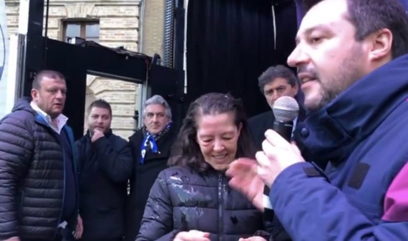 La loro opera però è stata prontamente rimossa dagli operai del Comune. Poi, però, non è andata così liscia per il ministro ad Atri. Il leader della Lega è stato costretto a fermarsi a causa di una contestazione da parte di una persona che gli ha lanciato contro un uovo. L’uovo lanciato in piazza del Duomo non ha però colpito il ministro ma è andato a infrangersi addosso a una signora.