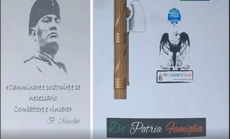 Ovvero per la festa dedicata al Ventennio ad Acquasanta Terme cui hanno preso parte (ma sono solo passati “a salutare”) due esponenti di Fratelli d’Italia: il sindaco di Ascoli Piceno Marco Fioravanti e, appunto, proprio l’allora “semplice” deputato marchigiano Francesco Acquaroli. La cena è stata organizzata il giorno dell’anniversario della marcia su Roma. Sulle tavole c’erano menù con fasci littori e foto del Duce ed altri riferimenti al fascismo accostati a quello del partito di Giorgia Meloni.